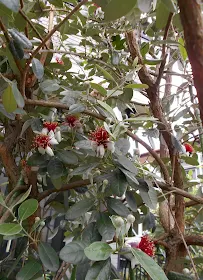昨日からやっとアポロが咲き始めました。ニキタの方は、あと数輪しか蕾が残っていないので、アポロからニキタへの授粉はもう諦めています。また、以前、アポロで、地植え1本と鉢植え2本とを比較してみたところ、鉢植えの方は数年目でも花自体が華奢で、異品種でちゃんと受粉しても貧弱な実しか成らなかったので、フェイジョアの鉢植えに関しては期待していません。なので、ニキタは、リストラ候補の跡地に、来年の春に下ろす予定です。