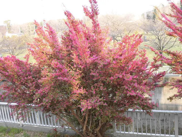 今朝、この木の横を通ったとき、ウグイスが木の中で鳴いていました。