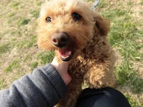そこへ、これまた小さなトイプードルがやってきました。名前はアポロ君で、人見知りが激しいそうです。