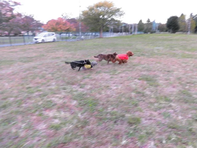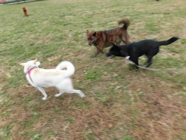 ヒート中のヒナちゃんは未だリードに繋がれたままで、思うように追いつけません。