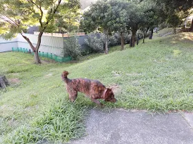 午後にタイガのシャンプーをしたので、自然乾燥の散歩で公園へ行きました。