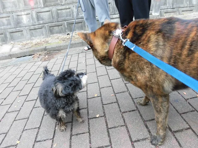 甲斐犬2頭はアズキちゃんをよそにお互い睨み合い。