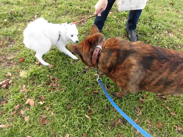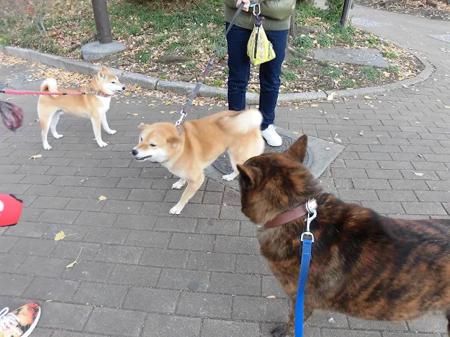 Ku, male Shiba Inu, meeting after 2 years' absence.