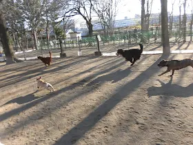 久しぶりに朝のドッグランへ行ってみました。既に何頭か居て、なかには初対面の子らもいました。中央のケアンテリアのチャンプとその右のバーニーズのレックス以外は初対面です。