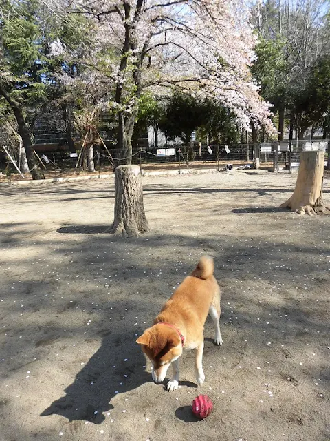 ヤマトは柴にしては大柄で脚も長いので、かなりの美犬です。和犬なのにボール遊びが大好きで、ムギちゃんの飼い主さんが持つボールを狙っています。