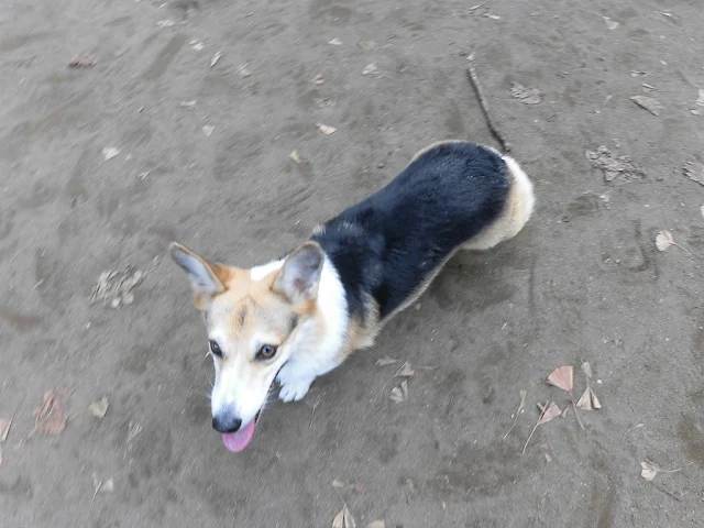 さっそく追いかけっこ。コーギのピリカちゃんを無視。