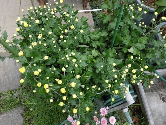 園芸用の支柱を買いにJAへ行ったら、ピンクの食用菊が出ていました。ずっと昔に育てていたことがありますが、その後、もっと豪華な観賞用の菊に目が移ってボツにしてしまいました。でも、今は黄色の食用菊を気に入って育てているので、ピンクが加われば色が冴えます。黄花のほうは随分と大株になったので、今年こそは一部を味見しようと思います。