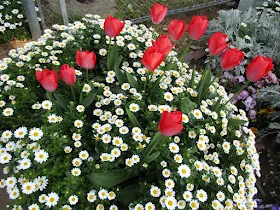 5月まで閉鎖されている野球場横の花壇は花盛りです。