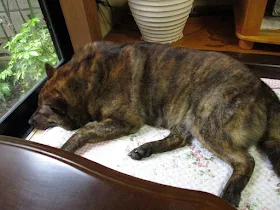 ヒマー、なタイガ。今日は午後から雨が降り出して、夕方の1時間散歩はできそうにありません。用足ししたら終わりになりそうです。