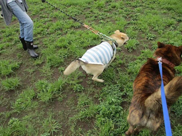 As they ran about, Subaru's mom and I had to run to accommodate their moves. (Since there were small children in the same field, we had to hold on to the leash.)