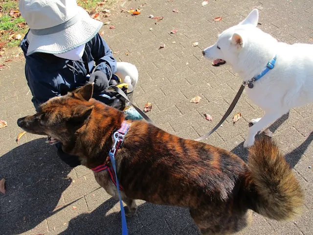 When we arrived at the park, we met Ume, my neighbour's female Kishu. Even though we live only about 20 meters apart, it has been some time since we last met.