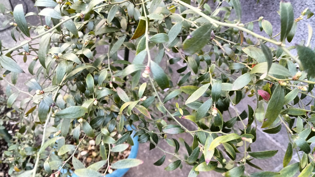 The kumquat fruits are ripening slowly. This is a seedless variety and it is much more pleasant to eat without seeds.