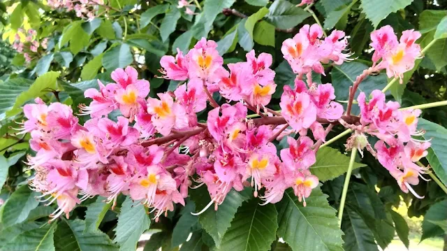 モワッとする暑い朝でした。今からこんなにへこたれていては、どうやって夏を乗り切るのか。。。 公園では初夏の花、西洋トチノキがピークは過ぎたもののまだ綺麗に咲いていました。