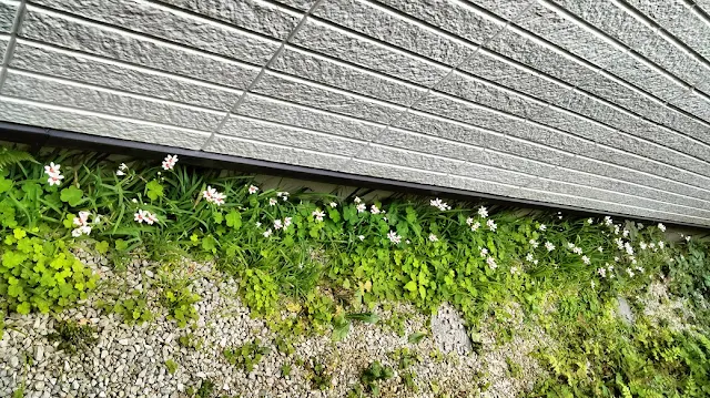 家の北側の通路に毎年勝手に出てくるヒメオウギ。本当は玄関前の陽当たり良好で土がフカフカの場所に生やしたかったのですが、すぐ消滅してしまいました。アヤメの仲間なのに、このカツカツの乾燥した場所が気に入っているようです。北側なので直射日光が当たるのは夕方のほんのわずかな時間だけですが、こぼれ種から増え続けています。