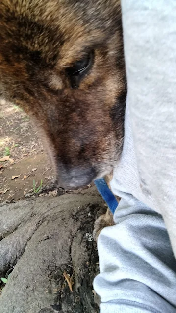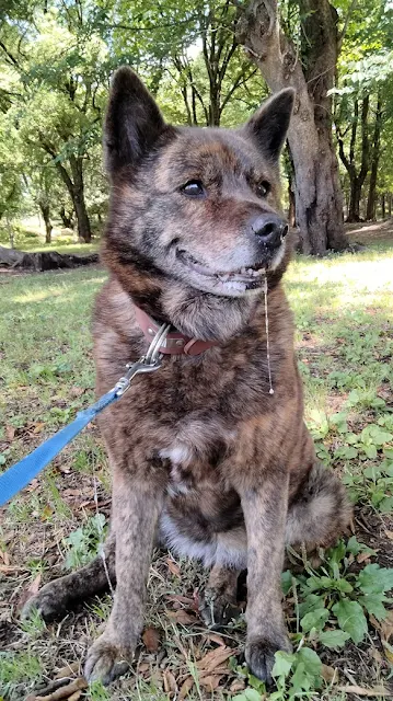 Taiga has never been pushy when she wants something. However, she was different this morning. As I was getting her treat out of my bag, she stuck herself to my back and watched my hands. I have never seen her behave like a Western dog with strong demands. I wanted to chuckle but tried to stay calm, since I had to remind her to behave. Nevertheless, she was glued to my back. I have never seen her behaving like this (I even got worried that she was playing a baby having sensed the end of her life.... That's what my budgie did in his final hours, and the memory upsets me even now),Taiga looking happy with the treat in her mouth. Since I was taken aback by her unusual behaviour, I gave all the treat I had on me.