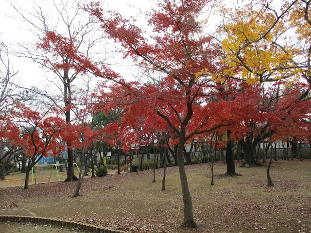 坂を上りきると、私の好きなノムラモミジの赤い葉っぱが僅かに残っていました。